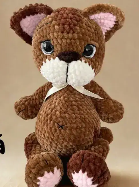 Tato háčkovaná kočička je vyrobena z ultra jemné žinylkové příze, takže je neuvěřitelně hebká a „muchlací“. Návod je velmi detailní a provede vás celým procesem od háčkování končetin přes tvarování těla až po finální sešití a vyšívání obličeje.