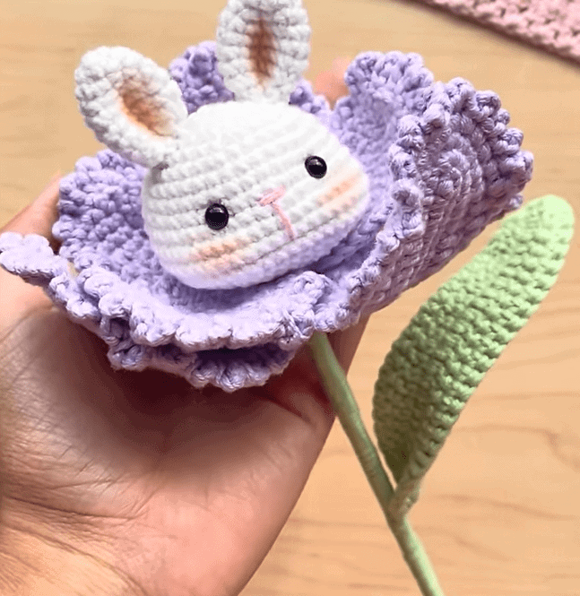 Háčkovaný Tulipán s překvapením – vykukující králíček