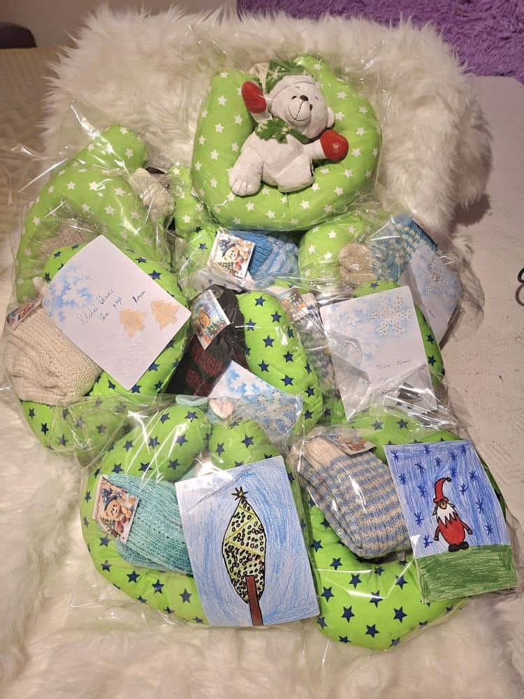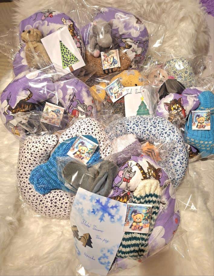 Děkujeme vám všem, kteří jste se zapojili. Děkujeme dětem a učitelům ze ZŠ Hradební, všem lidem s dobrým srdcem, kteří věnovali svůj čas a trpělivost ruční výrobě těchto darů, našim dárcům i personálu nemocnice. Každým očkem v pletených ponožkách, každým stehem v barevném podhlavníku a každou laskavou myšlenkou jste se stali anděly těchto Vánoc. Bez vaší obětavosti by tyto chvíle hluboké lidské vzájemnosti nevznikly.